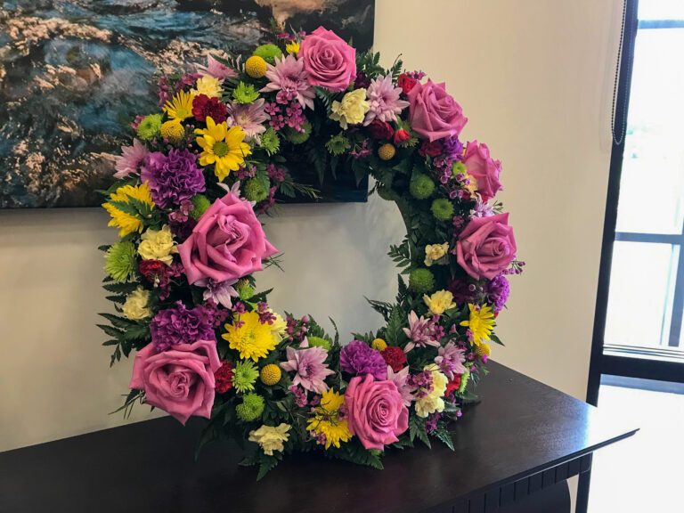 To mark this year’s inaugural celebration, we floated a memorial wreath out to sea at Depoe Bay, Oregon. In addition to serving as the location of our scatterings at sea, Depoe Bay has a long tradition of wreath floats honoring those who have passed, including the Fleet of Flowers ceremony that takes place there every Memorial Day. In order to ensure that our service would not have a negative impact on the environment, we chose a wreath specifically to be 100% biodegradable with fresh real flowers on a paper mache frame. Before the wreath went out to sea, it made a quick stop by our Portland office so that we could get some pictures to share with our donors and donor families.